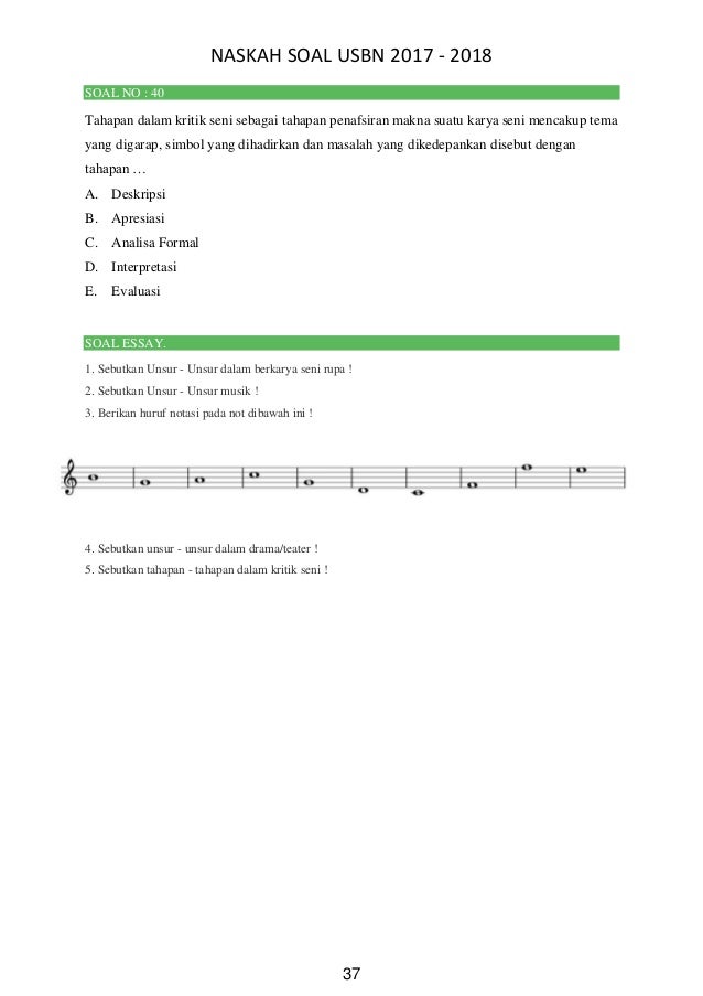 Kartu Soal Seni Budaya 2018 from imgv2-1-f.scribdassets.com Soal essay tentang kritik karya seni rupa. Maybe you would like to learn more about one of these? We did not find results for: Check spelling or type a new query.